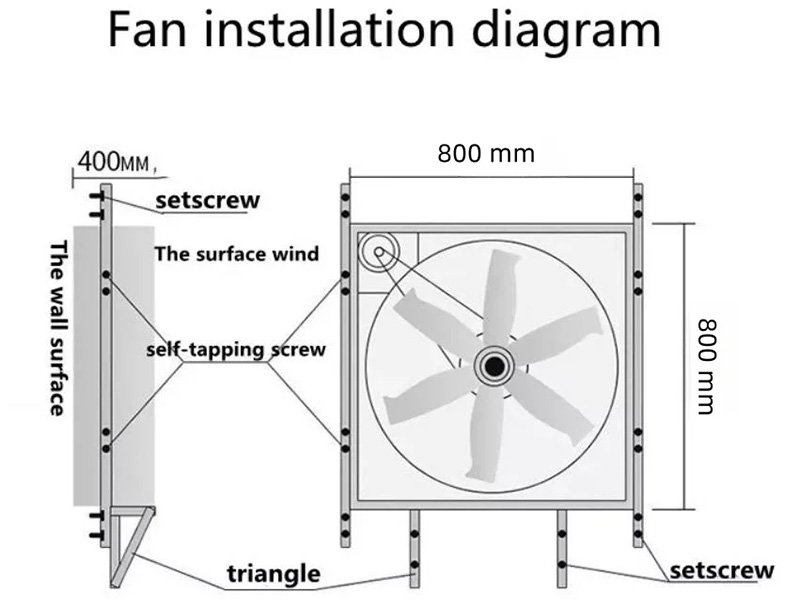 1. Adjust the horizontal and vertical , keeping the fan blade running smoothly.2. After fixing the fan, the remaining gap need to be sealed.3. The Expansion screws and Self tapping screw can be used to fix.